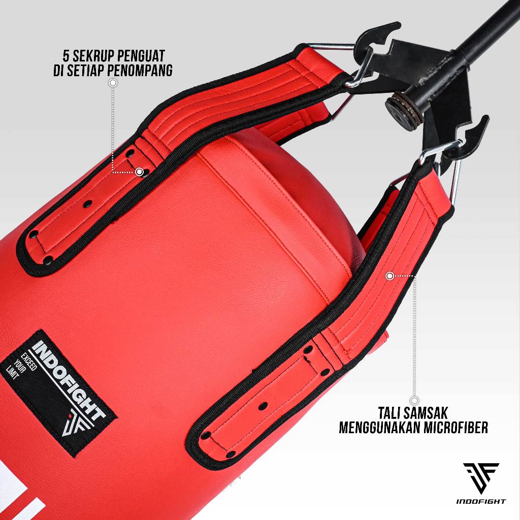 – Terdapat 5 sekrup yang dipasang di tiap penopang samsak, untuk kekuatan dan keawetan samsak